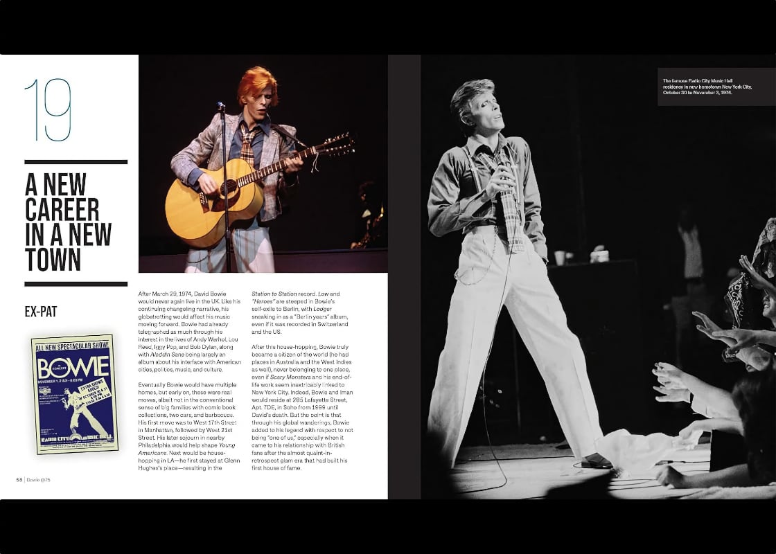 In Bowie@75, I first curate and then celebrate 75 David Bowie career highlights, milestones and events good and bad, including in that list of 75, every studio album. Along with the text is a panorama of photography—live shots, studio, memorabilia—of every stripe imaginable, approximately 350 pictures in all.
