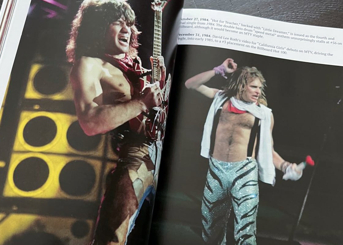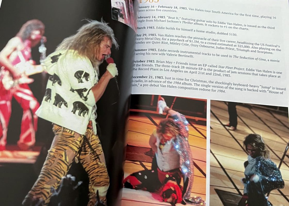 The end result is a beach-balling an’ sun-tanned symphony of words and pictures, indeed a book that differs from previous Van Halen photography projects through the inclusion of so much rare memorabilia, side ephemera and otherwise nifty pictures of paper goods perking up each page as one basks in what this band managed to accomplish over four decades of white-knuckle rock on the edge.